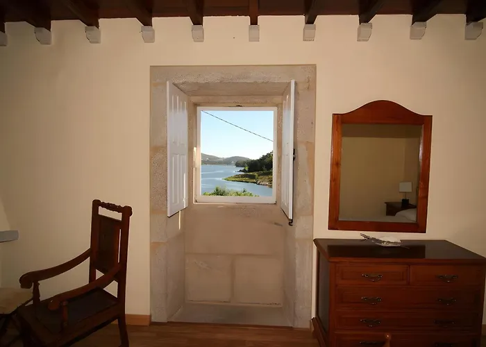 A Torres de Oeste körülbelül egy 10 perces autóútra található 2 hálószobás O Lar De Natalio Villa Rianjo tengerre néző terasszal büszkélkedik.
